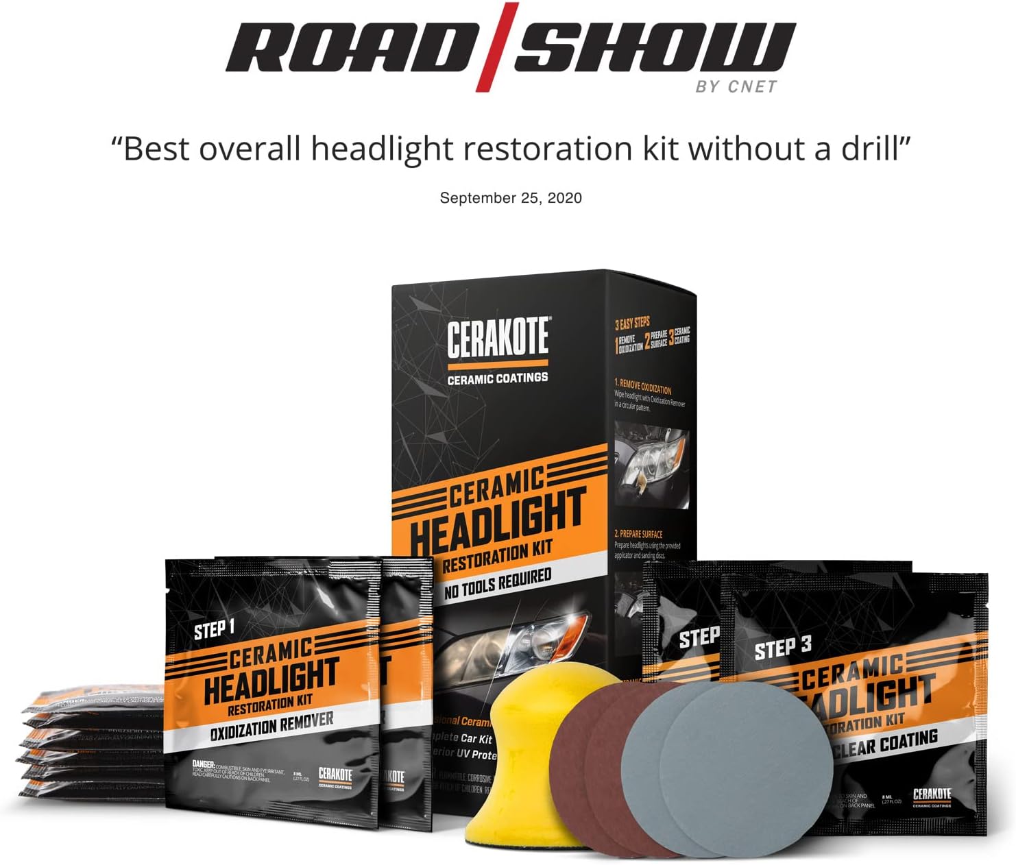 - 3 EASY STEPS! – Cerakote’s Headlight Restoration Kit is a simple, 30 minute process. Step 1: You’ll be mesmerized by our Oxidation Remover as you wipe away the hazy surface oxidation. Step 2: Use our ergonomic surface prep pad to remove the deep oxidation and prep your headlight for the CERAMIC clear coating. Step 3: Cerakote’s pre-moistened Ceramic Headlight Restoration Wipes restore your headlights to a like-new condition that is backed by our limited lifetime warranty.